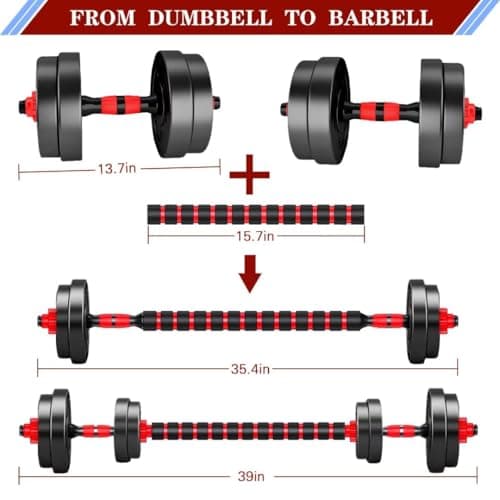 BDSHE Adjustable Dumbbell Set, 45lbs Free Weight Set with Upgraded Nut,4 in1 Dumbbells Set Used as Barbell, Kettlebells, Push up Stand, Weight Set for Home Gym Suitable Men/Women