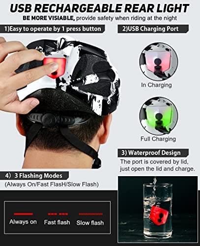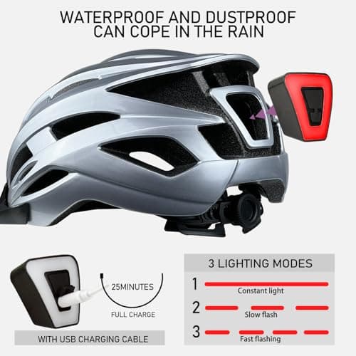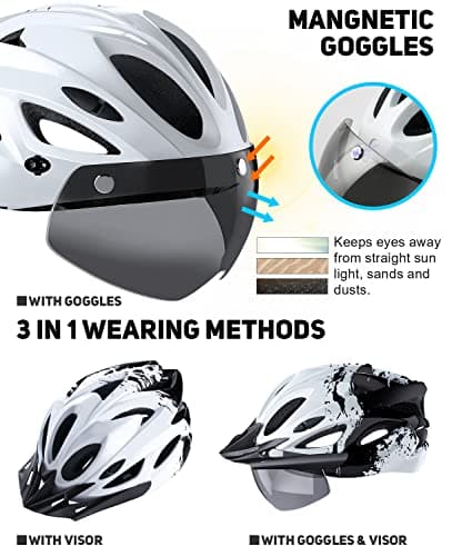 ILM Adult Bike Helmet with USB Rechargeable LED Front and Back Light Mountain&Road Bicycle Helmets for Men Women Removable Goggle Cycling Helmet E3-10L(Matte Black, Large/X-Large)