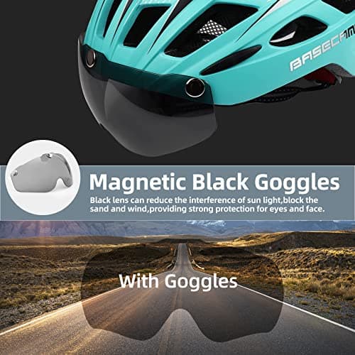 VICTGOAL Bike Helmet for Men Women with Led Light Detachable Magnetic Goggles Removable Sun Visor Mountain & Road Bicycle Helmets Adjustable Size Adult Cycling Helmets (L: 57-61 cm, Black Red)