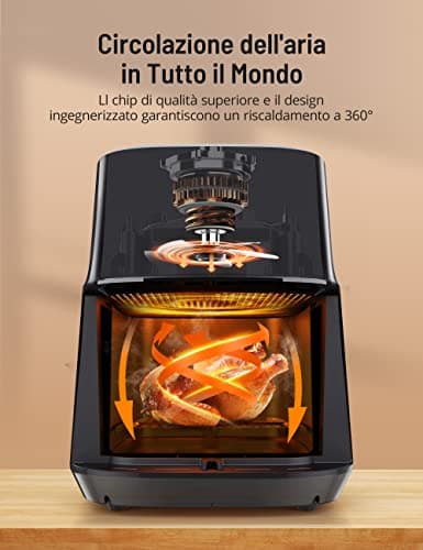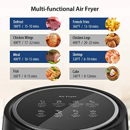 SUSTEAS Air Fryer, 5-Quart Family Size, One Touch Digital Control Presets with 400F Heat, French Fries, Chicken, Meat, Fish, Nonstick Quick & Easy Meals in Minutes, Black