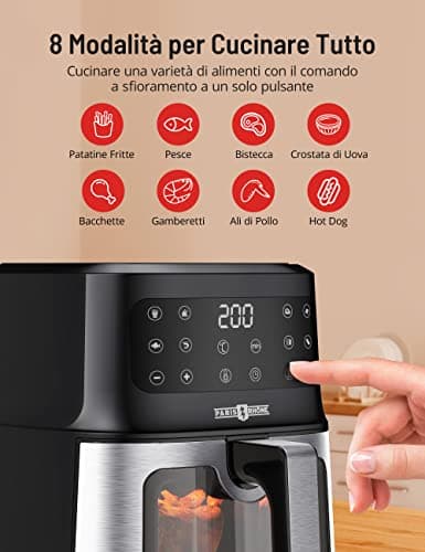 COMFEE' 3.7QT Electric Air Fryer & Oilless Cooker with 8 Menus and Timer & Temperature Control, Nonstick Fry Basket with Stainless Steel Finish, Auto Shut-off, 1400W, BPA & PFOA Free