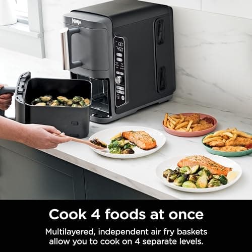 Ninja Air Fryer, 10QT DoubleStack XL 2-Basket, Compact Design, Cooks 5lb Whole Chicken, Feeds Up to 8 People, 6-in-1 Air Fryer, Roast, Bake & More, Easy to Clean, Dishwasher Safe Parts, Grey, SL401