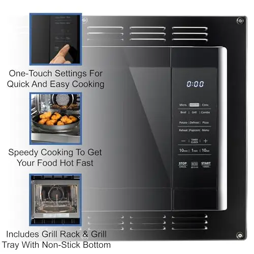 RecPro RV Kitchen Air Fryer & Convection Microwave with Trim Kit | 1.0 Cu. Ft. | 120V | 6 Cooking Modes (Black)