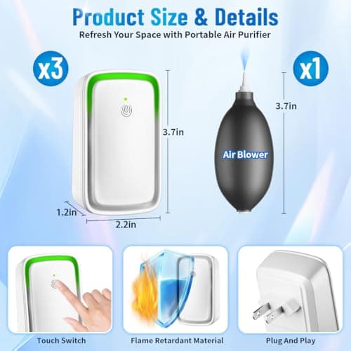 Air Ionizers for Home (3 Pack), Negative Ion Generator, Quiet Air Freshener for Bedroom, Office, Kitchen, Portable Air Filter Odor, Smoke Dust, Pets, Eliminator, Mini Air Cleaner