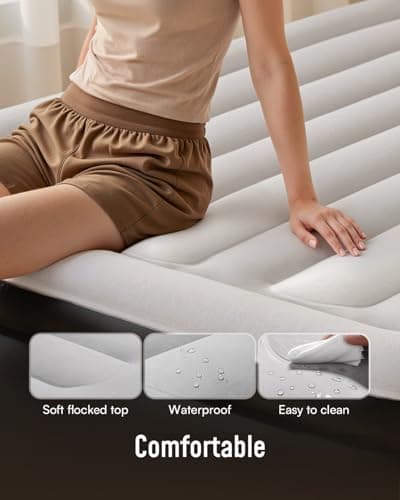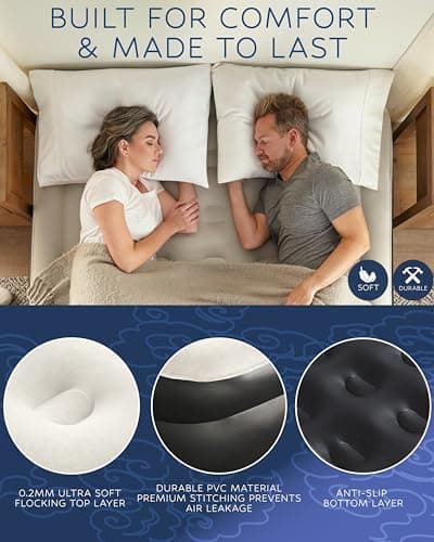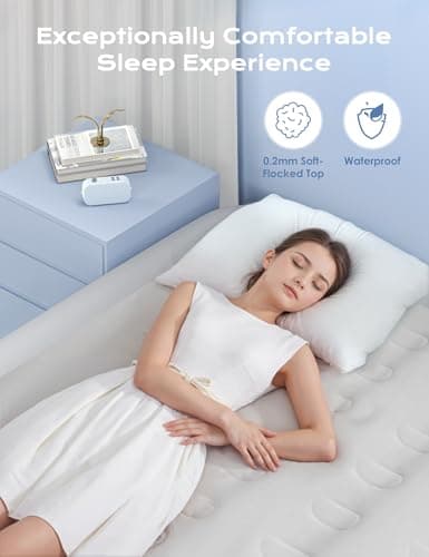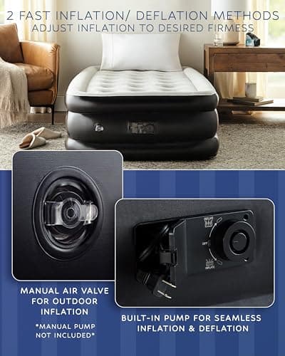 EZ INFLATE Air Mattress with Built in Pump - Twin Size Double-High Inflatable Mattress with Flocked Top - Easy Inflate, Waterproof, Portable Blow Up Bed for Camping & Travel