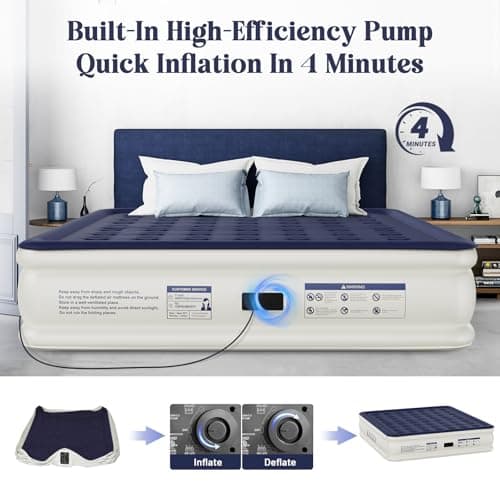 King Koil Luxury Pillow Top Plush Queen Air Mattress with Built-in High-Speed Pump Best for Home, Camping, Guests, 20" Queen Size Double Airbed Adjustable Blow Up Mattress, Waterproof, 1-Year Warranty