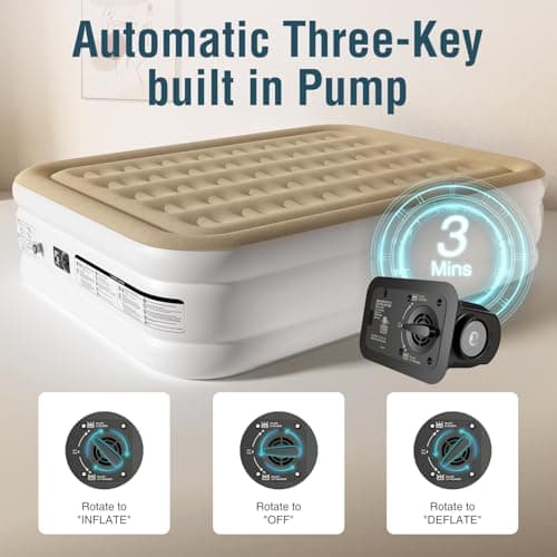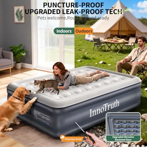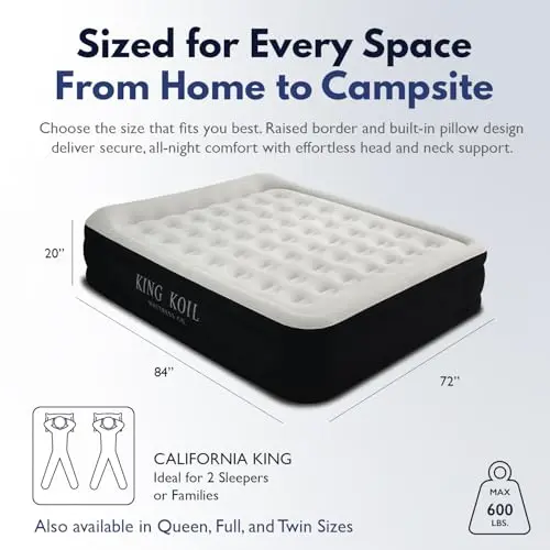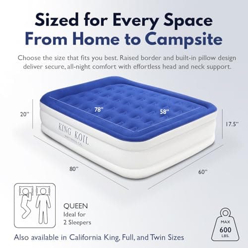 King Koil Luxury Pillow Top Plush Queen Air Mattress with Built-in High-Speed Pump Best for Home, Camping, Guests, 20" Queen Size Double Airbed Adjustable Blow Up Mattress, Waterproof, 1-Year Warranty