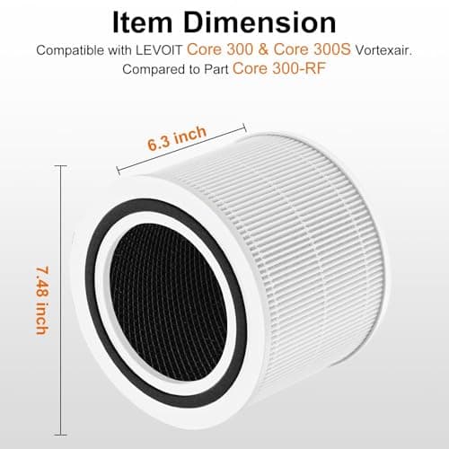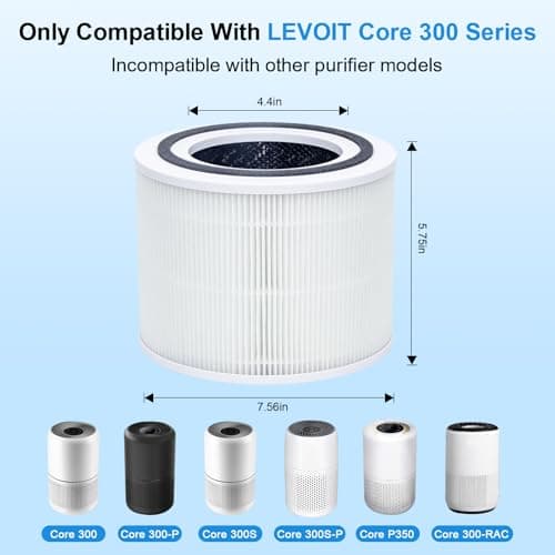 LEVOIT Genuine Core 300-P Replacement Filter, Core 300-RF Air Purifier Core300S Filters, Supports HEPA Sleep Mode, High-Efficiency Activated Carbon for Removal of Smoke, Odor, Allergens, Pollen,1 Pack