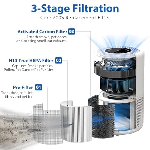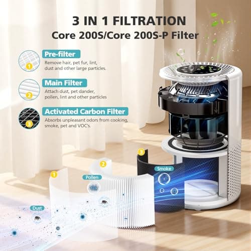 LEVOIT Core 200S-P Replacement Filter, Genuine Core 200S-RF Air Purifier Filters, Supports HEPA Sleep Mode, High-Efficiency Activated Carbon for Removal of Smoke, Odor, Allergens, Pollen, 1 Pack
