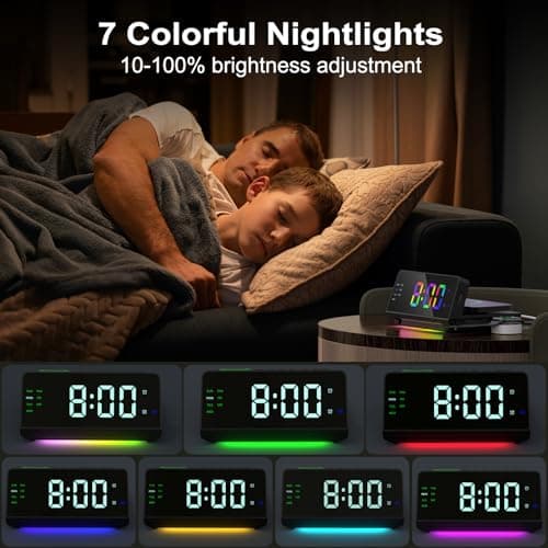 Cadmos Extra Loud Alarm Clock for Heavy Sleepers Adults,Teens,Kids,Rainbow Clock for Bedrooms,Small Bedside Digital Clock with Large Display,7 Color Night Light,12/24h(Black+Dynamic)
