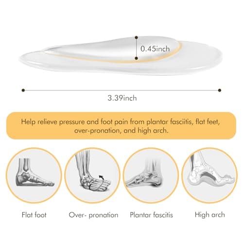 Dr. Foot's Arch Support Shoe Insoles for Flat Feet, Gel Arch Inserts for Plantar Fasciitis, Adhesive Arch Pad for Relieve Pressure and Feet Pain- 3 Pairs (Clear, 3 Count (Pack of 1))