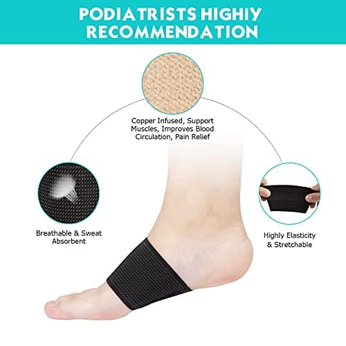 Arch Supports for Plantar Fasciitis Relief | Compression Sleeve Foot Brace For Heel Pain, Bone Spurs, Flat Feet, High Arches | Copper Infused Arch Support Bands for Women & Men Over Socks Fit Most