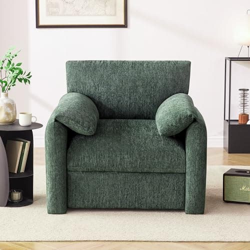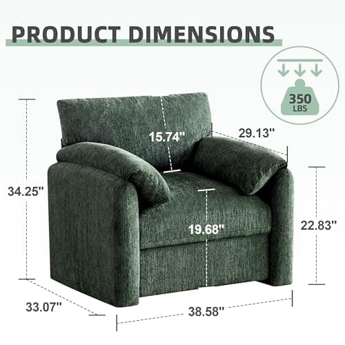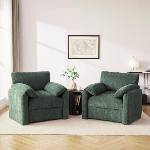 Howjoe Chenille Oversized Armchair, 38.6" Wide Accent Chairs for Living Room & Bedroom Modern Lounge Chair, Upholstered Mid-Century Reading Chair, Comfy Living Room Chair, Single Sofa Chair, Green