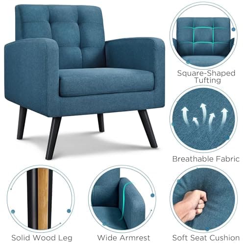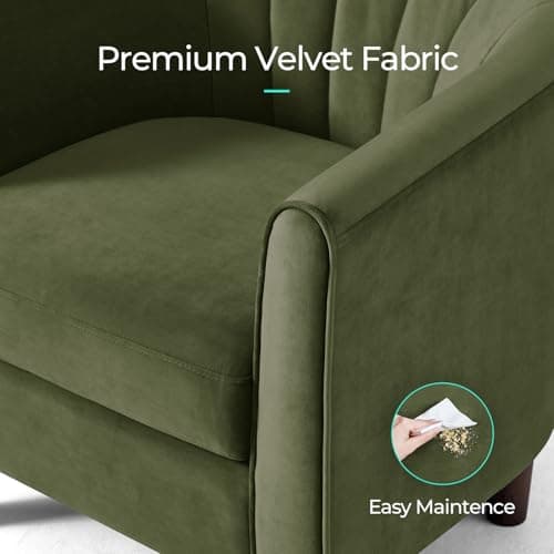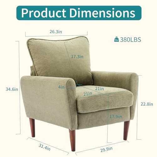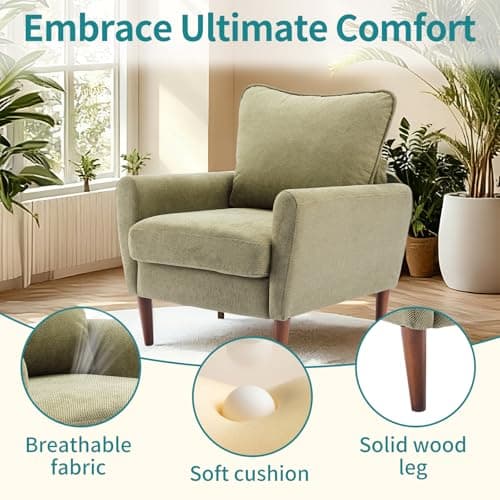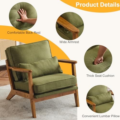 OLIXIS Comfy Accent Chair for Living Room Bedroom and Waiting Room, Upholstered Mid-Century Reading Chair with Pillow and Solid Wood Legs, Wide Singe Modern Lounge Sofa (Green)