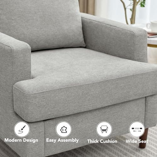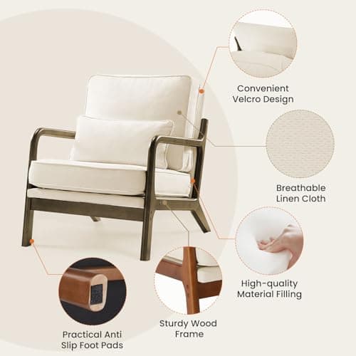 Karl home Accent Chair Mid-Century Modern Chair with Pillow Linen Fabric Upholstered Lounge Arm Chair with Solid Wood Frame & Soft Cushion for Living Room, Bedroom, Balcony, Beige