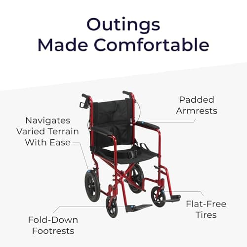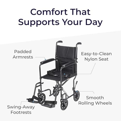 Drive Medical Lightweight Folding Transport Wheelchair - Reliable Mobility Support - Durable Steel Frame - Swing-Away Footrests - Compact Travel Design - Silver