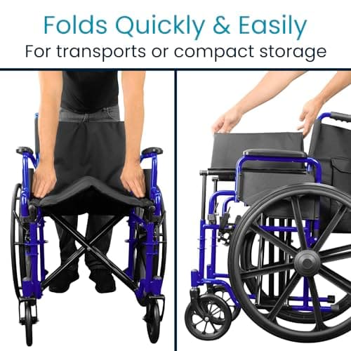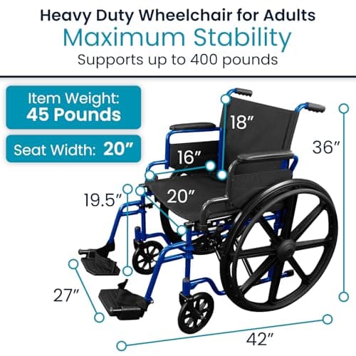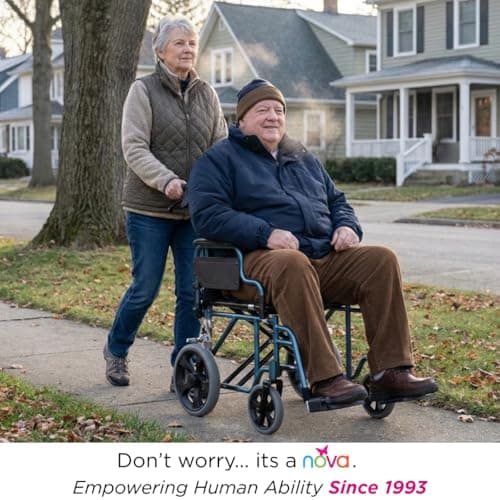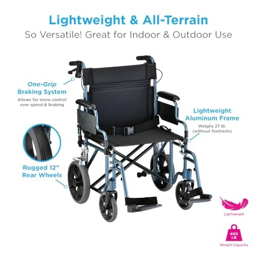 NOVA Heavy Duty Bariatric Transport Chair with 400 lb. Weight Capacity, 22” Extra-Wide Seat with Locking Hand Brakes, Flip Up Arms (for Easy Transfer), Anti-Tippers, 12” Rear Wheels, Color Blue