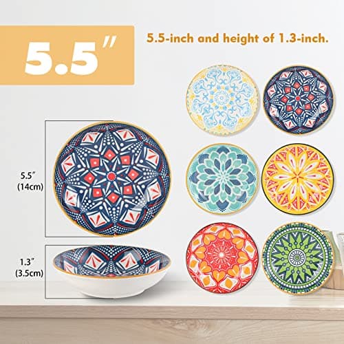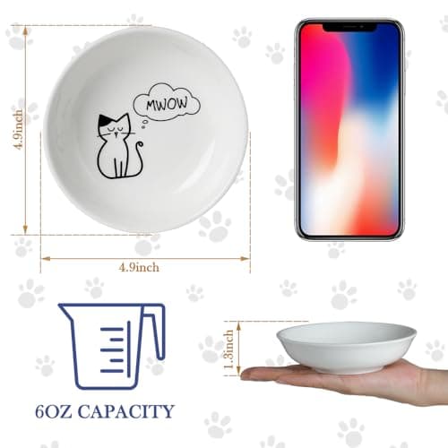 6 Pack Cat Food Bowl, Ceramic Cat Bowls, Anti Whisker Fatigue Cats Bowl Set,5.5 Inches Shallow Wide Kitten Plates for Food and Water (Cat's Paw+Fishbone)