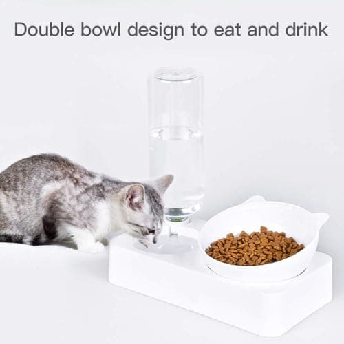 Marchul Double Cat Bowls, Elevated Pet Food and Water Bowl Set, 15° Tilted Raised Double Bowls for Indoor Cats, Small or Medium Sized Dogs