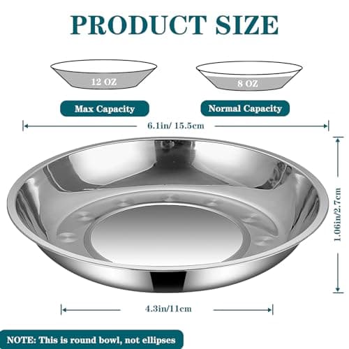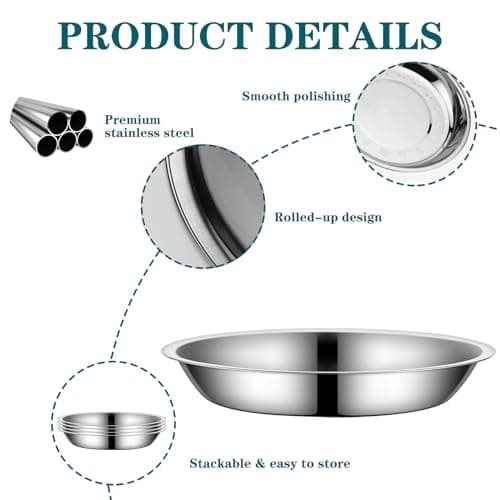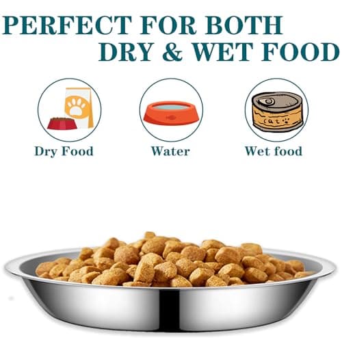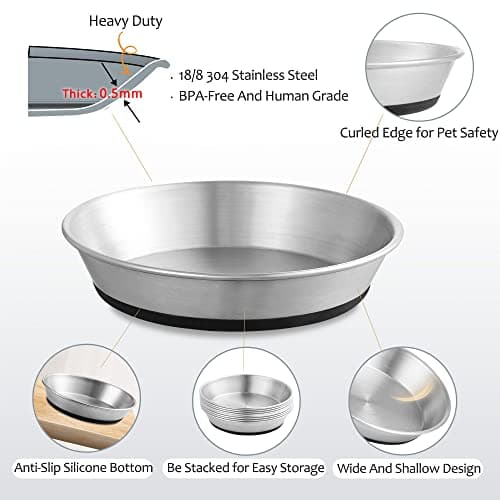 Petdream 4-Pack Stainless Steel Cat Food Bowls, Shallow Whisker-Friendly Non-Slip Silicone Base Metal Dishes, Easy to Clean Indoor Feeding Flat Plates for Cat, Kitten, Small Dog (6.7")