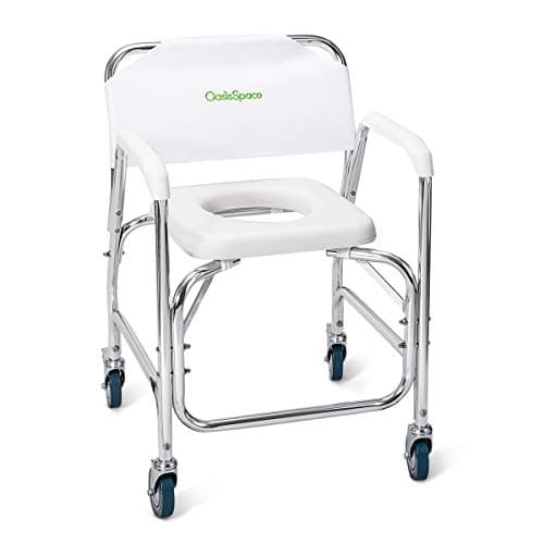 SolutionBased - - Lightweight Aluminum Folding Rolling Shower Chair for Elderly and Disabled - Rolling Commode Shower Wheelchair - Commode - Handicap Shower Chair with Wheels