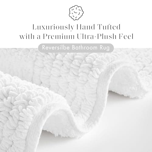 Madison Park Splendor Reversible 100% Cotton Tufted Bathroom Rug-3000 GSM Hotel Quality Luxurious Plush Medium Pile Bath Mat Absorbent, Quick Dry, Shower Room Décor, 21x34, White