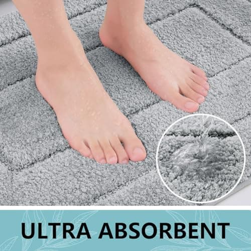 Walensee Bathroom Rug, Non Slip Bath Mat (16 x 24, Grey) Water Absorbent Soft Microfiber Shaggy Mat Machine Washable, Thick Plush Rugs for Shower