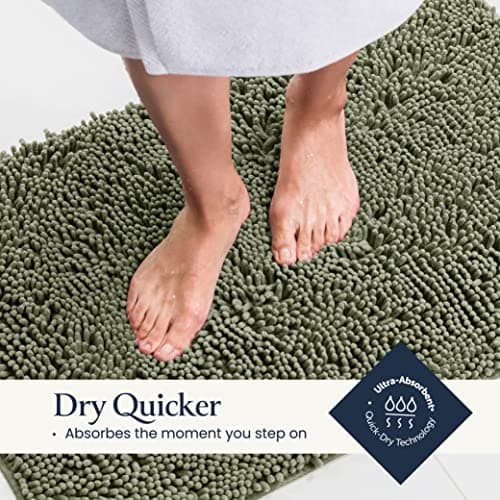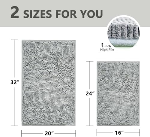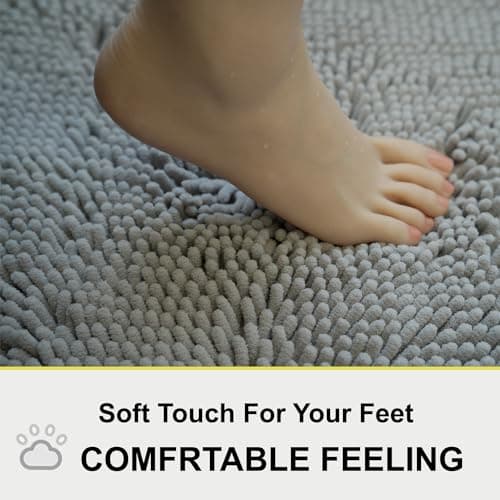 GORILLA GRIP Bath Rug Mat, Thick Soft Absorbent Chenille, Quick Dry Microfiber Mats, Rubber Backing Washable Shower Floor Rugs, US Designed Bathroom Bathmat Home Decor Accessories, 24x17, Grey