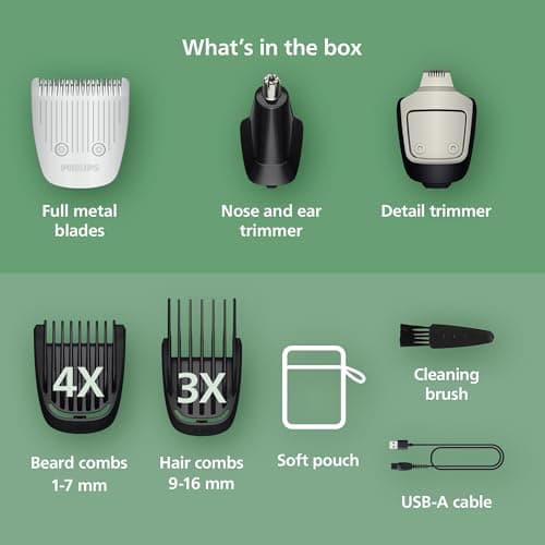 Norelco Philips Multigroom 3000 Series, All-in-One Trimmer, Beard Trimmer and Hair Clipper, 15-Piece Men's Grooming Kit for Head, Beard, Face, Nose, Ears, No Blade Oil Needed, Soft Pouch, MG3770/40