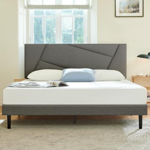Molblly Queen Size Platform Bed Frame with Adjustable Headboard, Linen Fabric Wrap, Strong Frame and Wooden Slats Support, No Box Spring Needed, Non-Slip and Noise-Free, Easy Assembly, Dark Grey