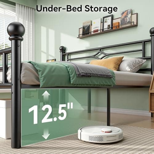 NEW JETO Metal Bed Frame,Twin Size Bed Frame with Storage Space,Heavy Duty Sturdy Mattress Foundation,Easy Assembly,No Box Spring Needed, Black,14 Inch,Twin
