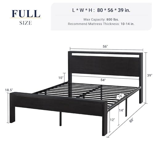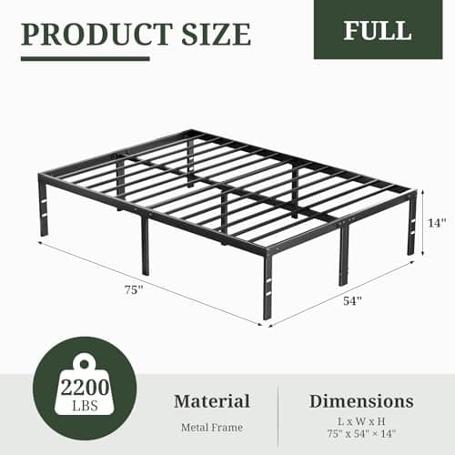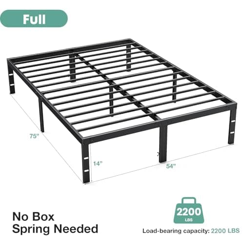 Hafenpo 14 Inch Full Bed Frame - Sturdy Metal Platform Full Size, No Box Spring Needed, Heavy Duty, Easy Assembly, Strong Bearing Capacity, Under Bed Storage, Black