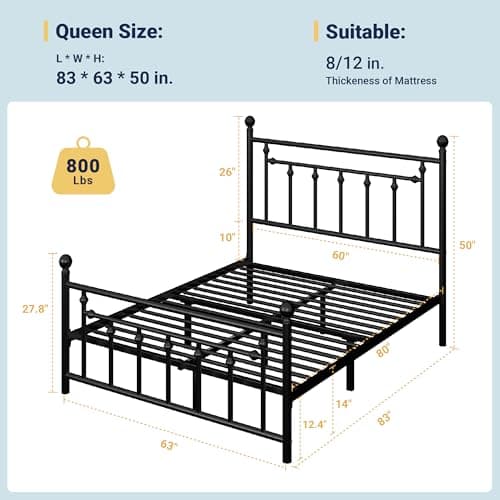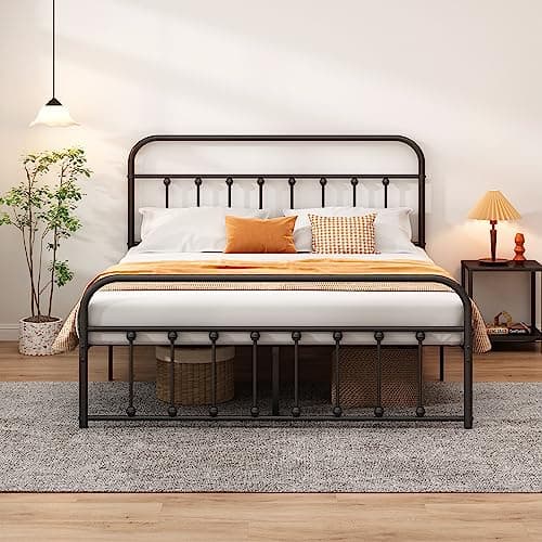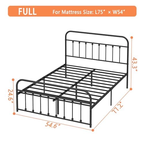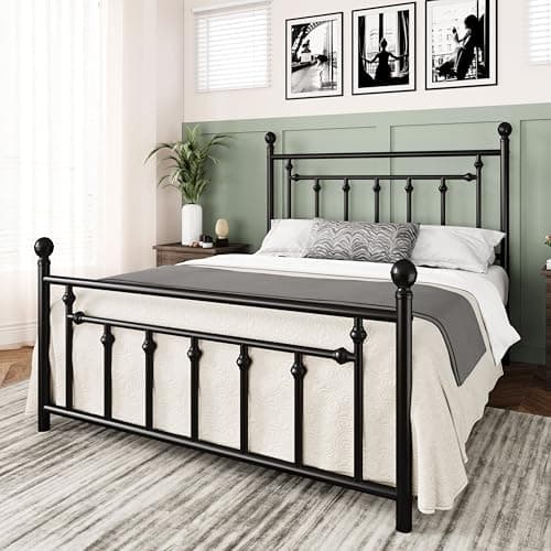 Yaheetech Classic Metal Platform Bed Frame Mattress Foundation with Victorian Style Iron-Art Headboard/Footboard/Under Bed Storage/No Box Spring Needed/Full Size Black