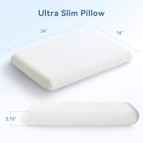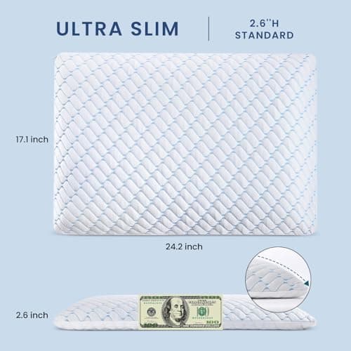 Ultra Thin Flat Soft Bed Pillows Standard Size Set of 2 Pack for Sleeping 20"x26", Hypoallergenic Skin Friendly Machine Washable