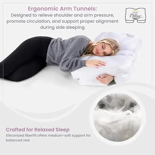 Wife Pillow The Side Sleeper Pillow with Arm Hole for Shoulder Pain - Arm Tunnel Pillow for Side Sleepers, Shoulder Relief & Neck Support Comfort Sleep Pillow for Adults - Down Alternative Fiber Fill