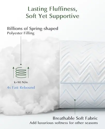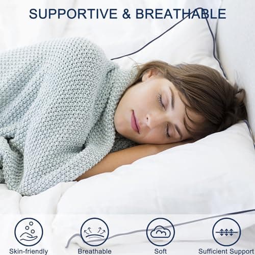 EDOW Luxury Soft Pillows for Sleeping, Fluffy Down Alternative Polyester Fiber Filled Pillow, Home&Hotel-Collection, Machine Washable