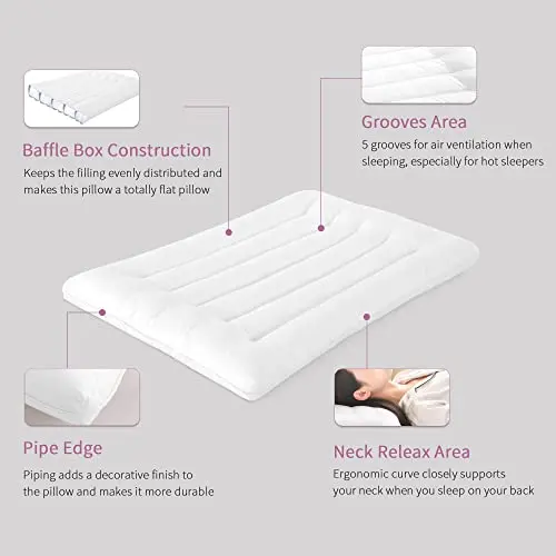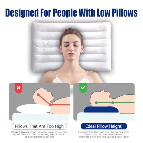 These warming bed pillows combine thin, flat designs with temperature-regulating cotton covers and breathable fiber fills to provide both spinal support and all-season comfort without overheating.