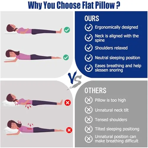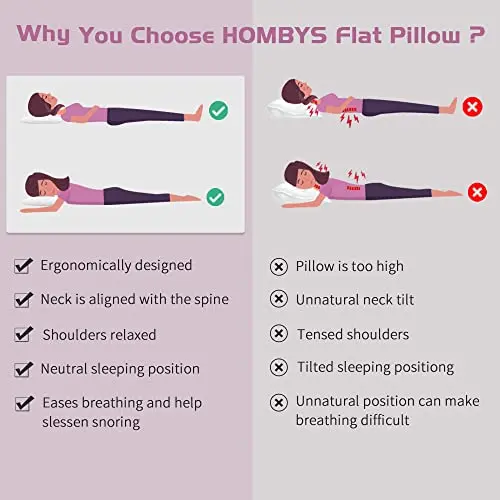 MINUPWELL Ultra Flat Pillows for Sleeping Thin, 7D High Support 2.5 inch Height Ultra Thin Pillows,Slim Bed Pillows for Stomach Sleeper,Standard Size -18x26 in