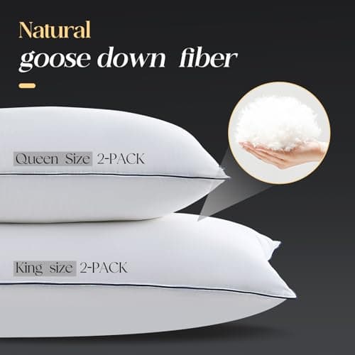 Yalamila Goose Down Bed Pillows Queen Size Set of 2 (White), Hotel Collection Pillows for Sleeping, Gusseted Pillow for Side, Back, or Stomach Sleepers, 20" x 30"