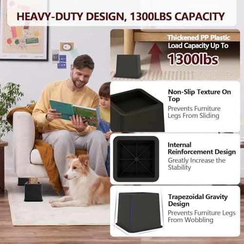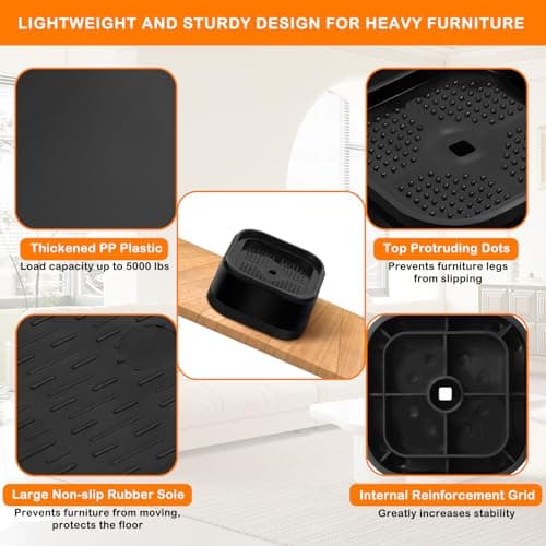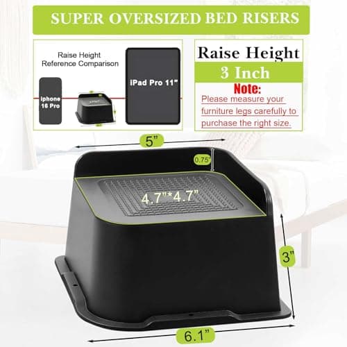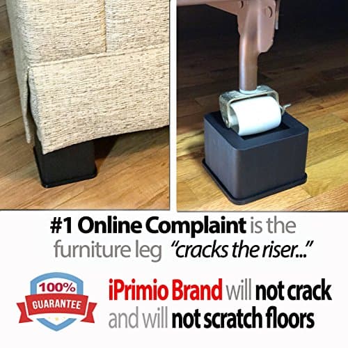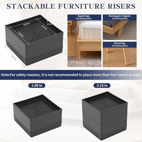 iPrimio Risers Heavy Duty - Square, 3" Lift, 4pk, Up to 6800lbs - Bed Raising Blocks, Furniture Risers, Dorm - Safe, Sturdy Bed Lifts for Dorm Rooms, Couches, Tables, Desk Riser