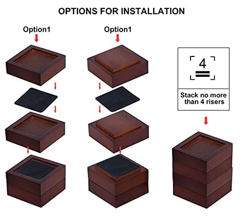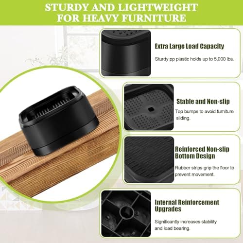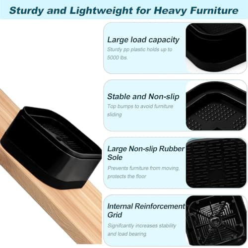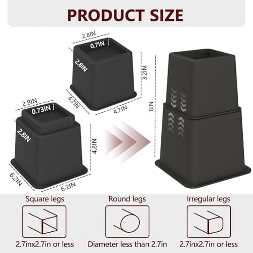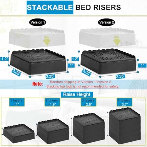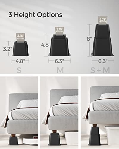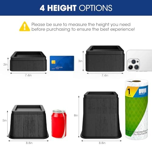 Demiwise Heavy Duty Bed Risers - Set of 4 Adjustable Furniture Risers, Elevation Heights of 3, 5 & 8 Inches, Supports Up to 1,300 lbs for Bed, Couch, Table & Chair