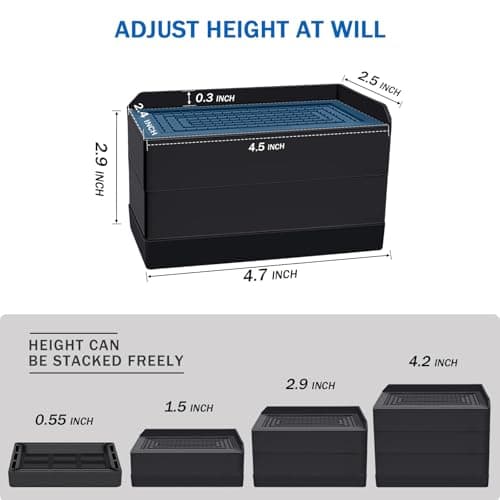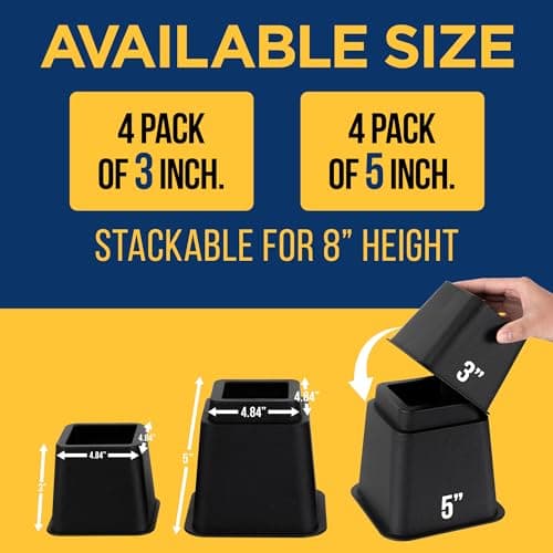 Home It Adjustable Bed Risers - Elevation in 3, 5 or 8 Inch - Heavy Duty Stackable Furniture Risers Supports 1,300 lbs - for Under-Bed Storage, College Dorms, Table and Couch, 4 Pack Bed Lifts Black
