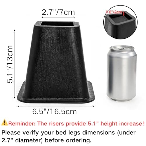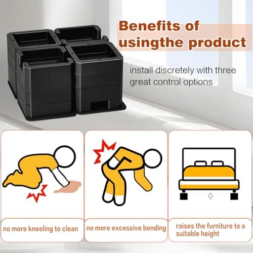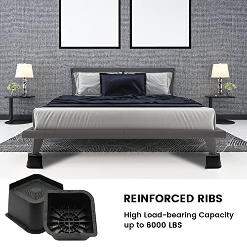 ZXBMS Bed Risers 4 Inch, Furniture Risers for Bed, Desk, Table, Sofa – Heavy Duty Bed Lifts Risers, 4 Pack Black