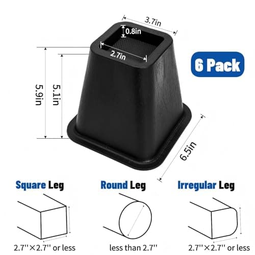 ANNKUT 6 Inch Heavy Duty Bed Risers, Furniture Risers for Desk, Chair, Table or Sofa, Couch Lift Risers, Supports up to 2200 lbs per Leg(6 Pack Black)