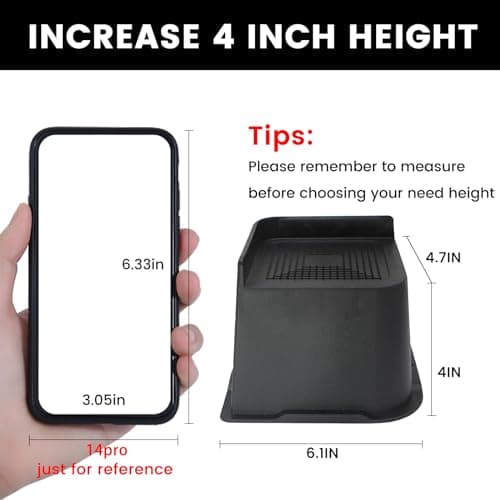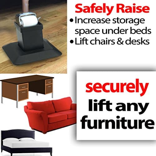 Kings Brand Furniture 6-inch Bed Risers - Set of 4 Black Heavy Duty Stackable Furniture Risers for Under Bed Storage, Desk, Sofa, Couch