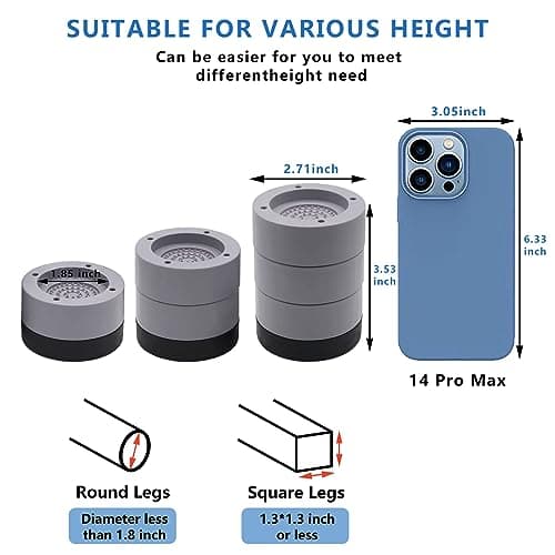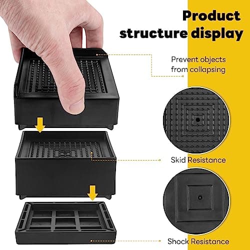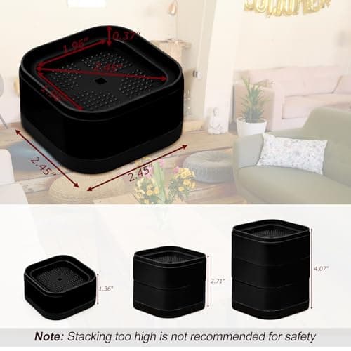 Bed Risers Heavy Duty, Adjustable Furniture Riser Blocks Lift 1.5, 3, 4.3 inches for Couch Table Desk Sofa Chair Legs, Refrigerator, Washing Machine - Support up to 4000 lbs (Black 4 Pack, 3 inch)