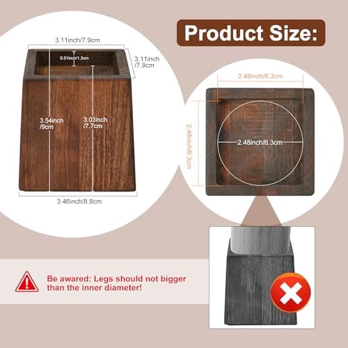Alpeir Wood Bed Risers Heavy Duty, Support Loading 2200lbs, 4 Pack Furniture Riser Leg Height Extenders Lifts for Dorm Sofa Couch Desk Chair Table, Retro Brown, 3.5" H(Inner 3" H)