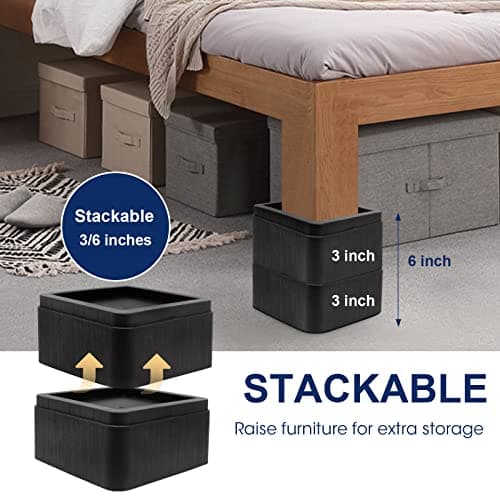 Feeloco Bed Risers,3 Inch Heavy Duty Furniture Riser for Legs,Adjustable Bed Lifts Risers for Sofa,Table,Desk,Couch,Chair,Bed Frame Accessories(Black 4 Pack,2+1inch)