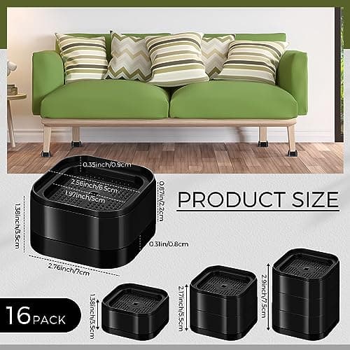 Furniture Risers Bed Risers Heavy Duty 1 inch, 2 inch, 3 inch, 4 inch Round Adjustable Bed Lifts Riser for Desk Legs Table Couch Sofa Chair Refrigerator Washing Machine (1+1 Inch, Black, 4 Pack)