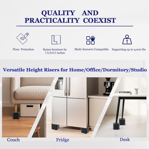 Start with the furniture you need to raise, then narrow by lift height and support. If the job is mainly a dorm bed or bed frame, open best bed riser for bed frame and dorm bed or the tighter bed frame riser shopper-term page. If the real use is a sofa, couch, table, desk, or chair, compare the dedicated use-case branches before looking at smaller details.